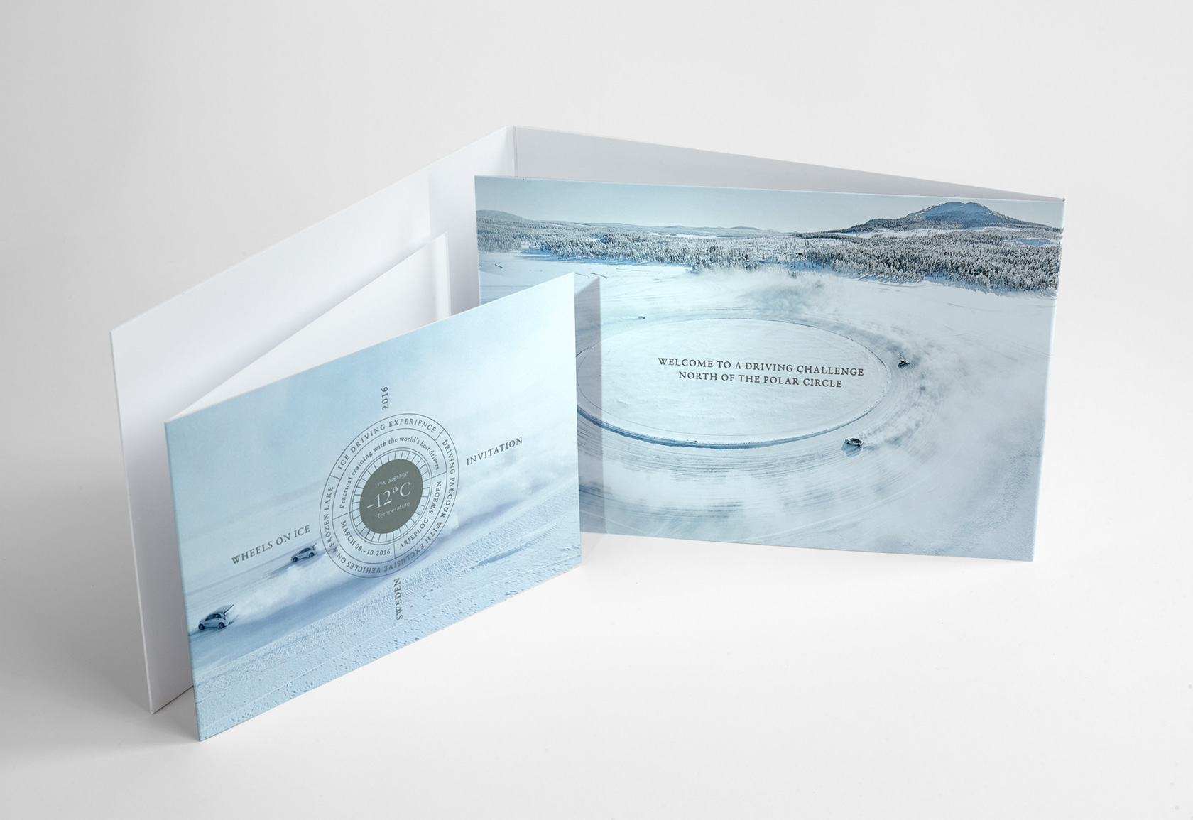 Event in Arjeplog, Schweden. Mercedes AMG bietet die Infrastruktur und die Fahrzeuge für einen speziellen Ice Driving Event. Auf dem gefrorenen See von Arjeplog werden die Gäste ans fahrerische Limit geführt. Die F1 Weltmeister Mika Häkkinen oder Nico Rosberg geben ihr Wissen an die Gäste weiter und erweitern so deren Können und Kompetenz am Steuer - auf Eis. Wir gestalteten die persönlichen Einadungspackages für die Gäste, bestehend aus Folder, Program Broschüre, Einladung, RSVP und weiteren Materialen. Für den Anlass selber sind es Welcome Cards, Pocket Programs, Menu Cards und mehr.