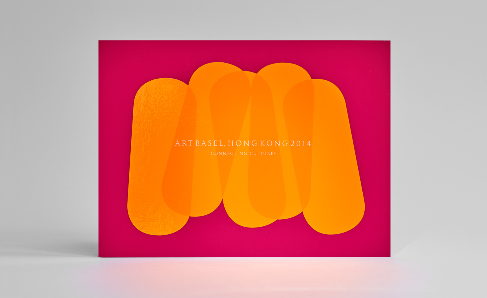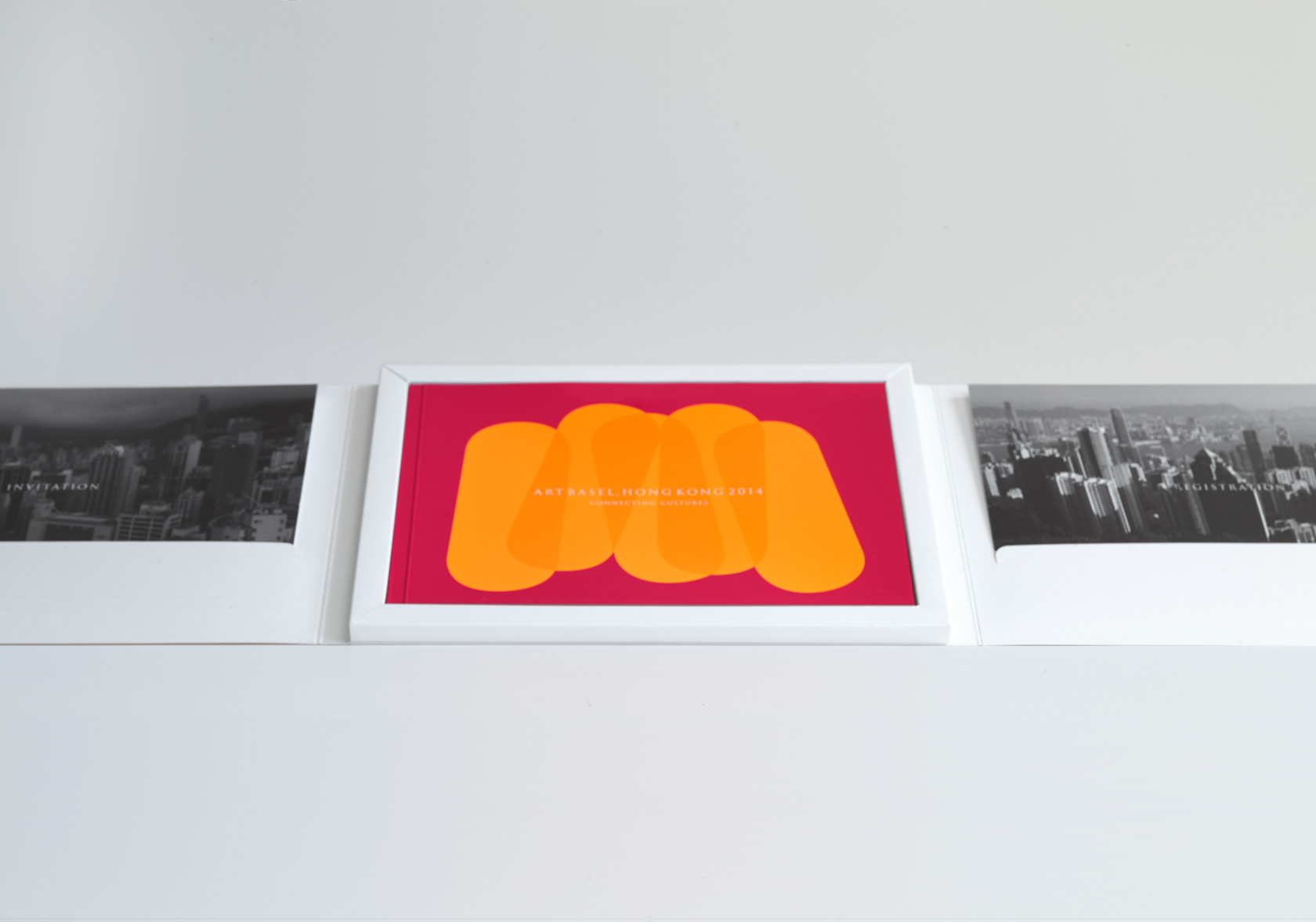 Event in Hong Kong. Einladungspackage mit Broschüren, Onsite Collaterals und E-Save the Dates, Invitations und Confirmations. Das Key Visual in Leuchtorange auf pinkfarbenem Untergrund bezieht sich in loser Form auf ausgestellte Plastiken. Nach Abschluss der Art Basel Hong Kong realisierten wir ein Fotobuch, das einige Wochen nach dem Event an die Gäste verschickt oder abgegeben wurde. Fotograf war Alberto Venzago.
