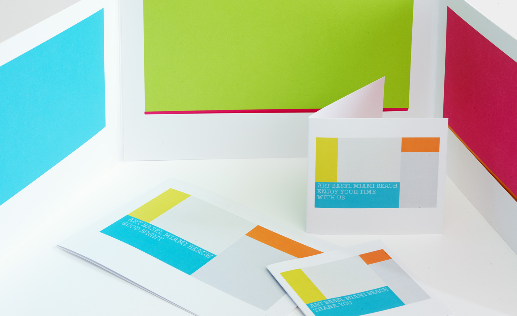 Event in Miami Beach. Einladungspackage mit Folder, Invitation Card, Program Cards, Onsite Collaterals und E-Save the Dates, Invitations und Confirmations. Ausserdem eine iPad Box mit Angaben zur Verwendung des iPads im Rahmen des Events. Das Key Visual ist eine beliebig erweiterbare Oberfläche aus Farbfeldern, diese wurden für bestmögliche Pigmentierung im Siebdruck produziert. Die Farbfelder sind eine Anspielung auf die hier oft anzutreffende, recht kräftige Farbwelt.