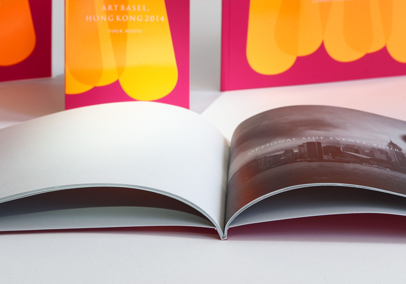 Event in Hong Kong. Einladungspackage mit Broschüren, Onsite Collaterals und E-Save the Dates, Invitations und Confirmations. Das Key Visual in Leuchtorange auf pinkfarbenem Untergrund bezieht sich in loser Form auf ausgestellte Plastiken. Nach Abschluss der Art Basel Hong Kong realisierten wir ein Fotobuch, das einige Wochen nach dem Event an die Gäste verschickt oder abgegeben wurde. Fotograf war Alberto Venzago.