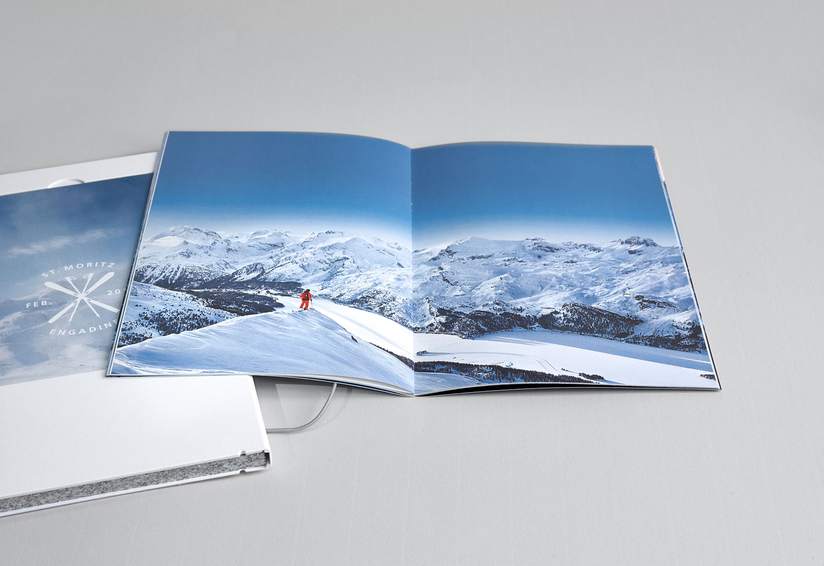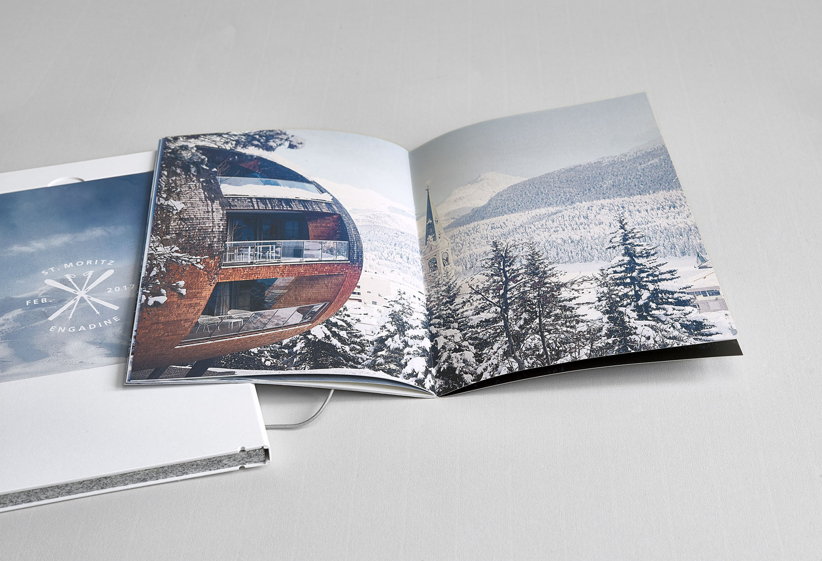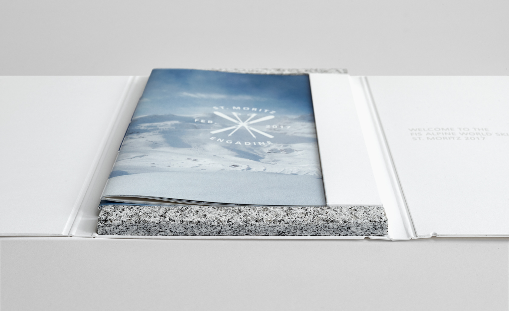 Das Package haben wir bewusst leicht und schlicht gestaltet. Dafür aber Engadiner Granit als Zusatzmaterial verwendet. Also einfach lokales Material statt ornamentalem Alpine Look, schlichter Stein statt dekorativem Edelweiss. Alles ist weiss, kühl und frisch wie Schnee im Gebirge. Das Package enthält 2 Broschüren mit Fadenheftung: Eine für alle Informationen zum Event, eine zweite mit spannenden Informationen zum Engadin, seiner Geschichte und seiner Besonderheiten. Es geht also nicht nur um den Event, sondern weckt auch das Interesse am Ort, seiner Geschichte seinen Leuten, und mehr.